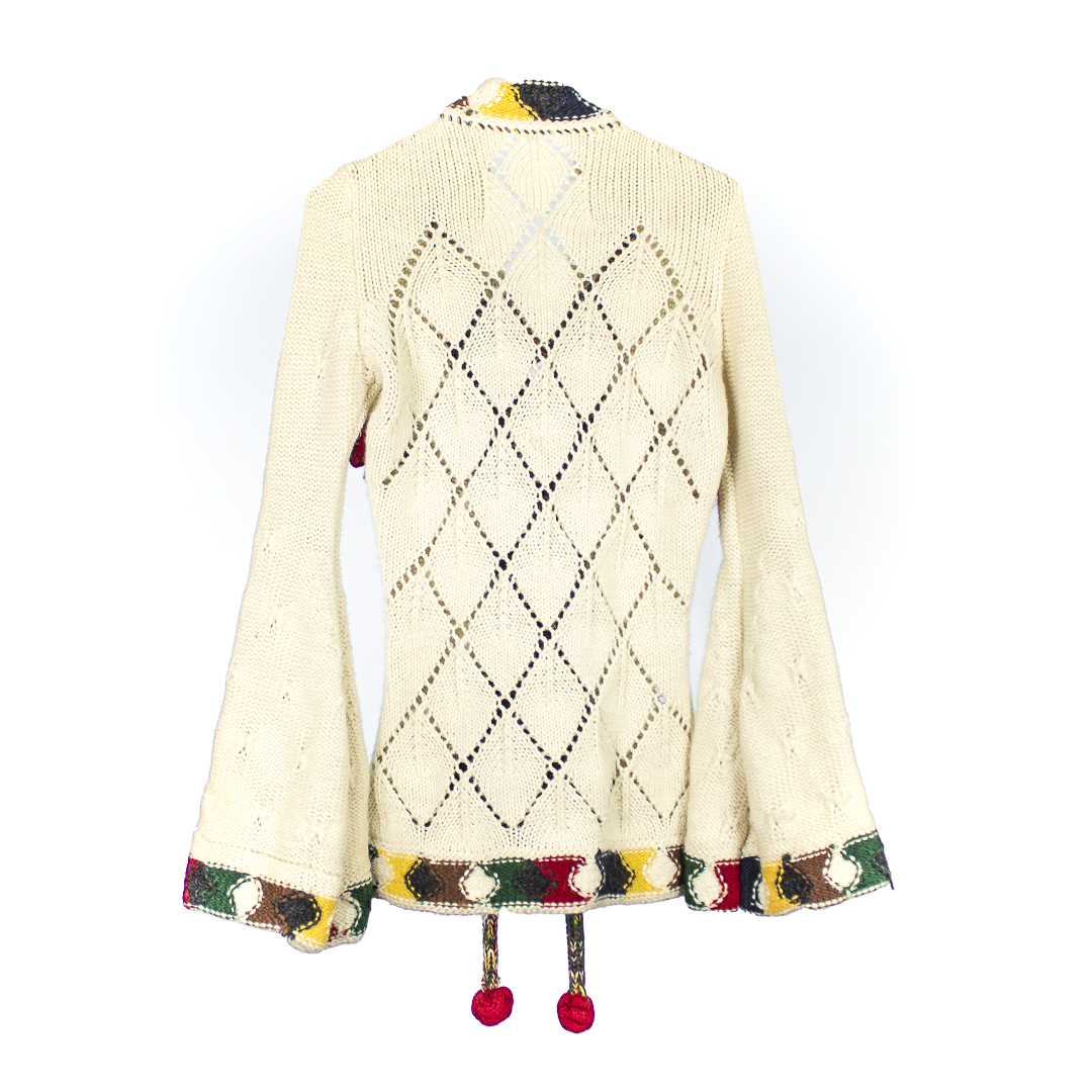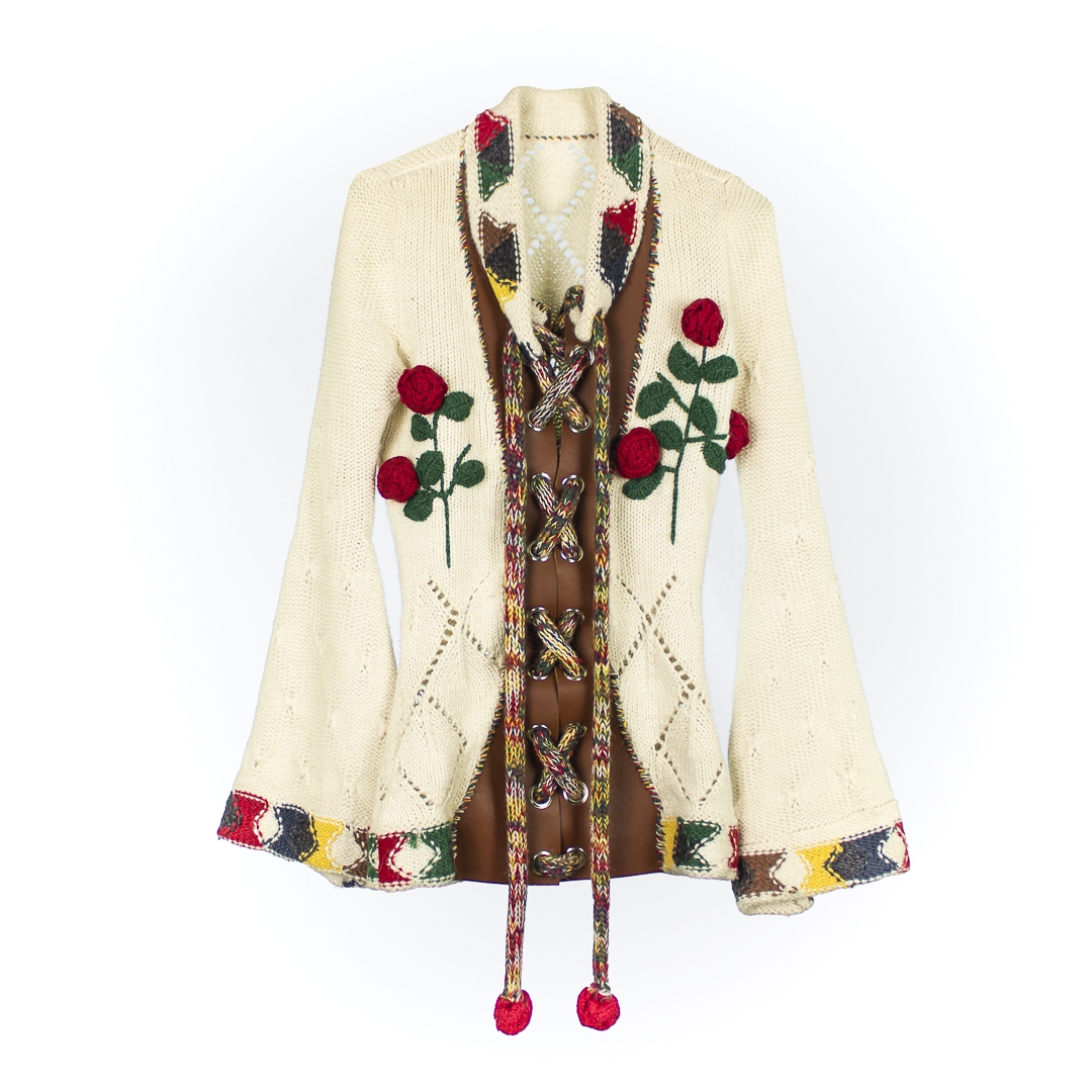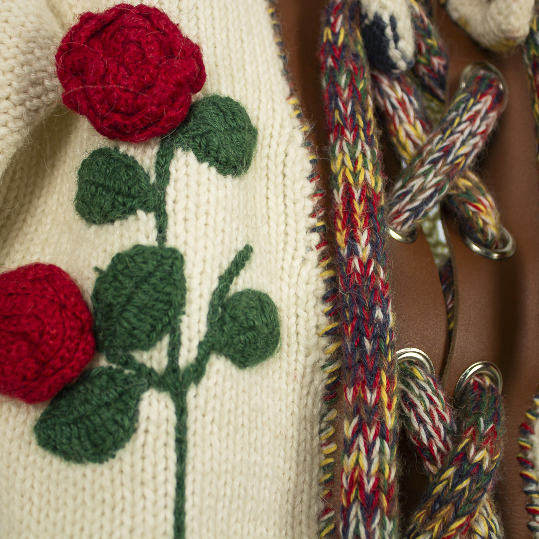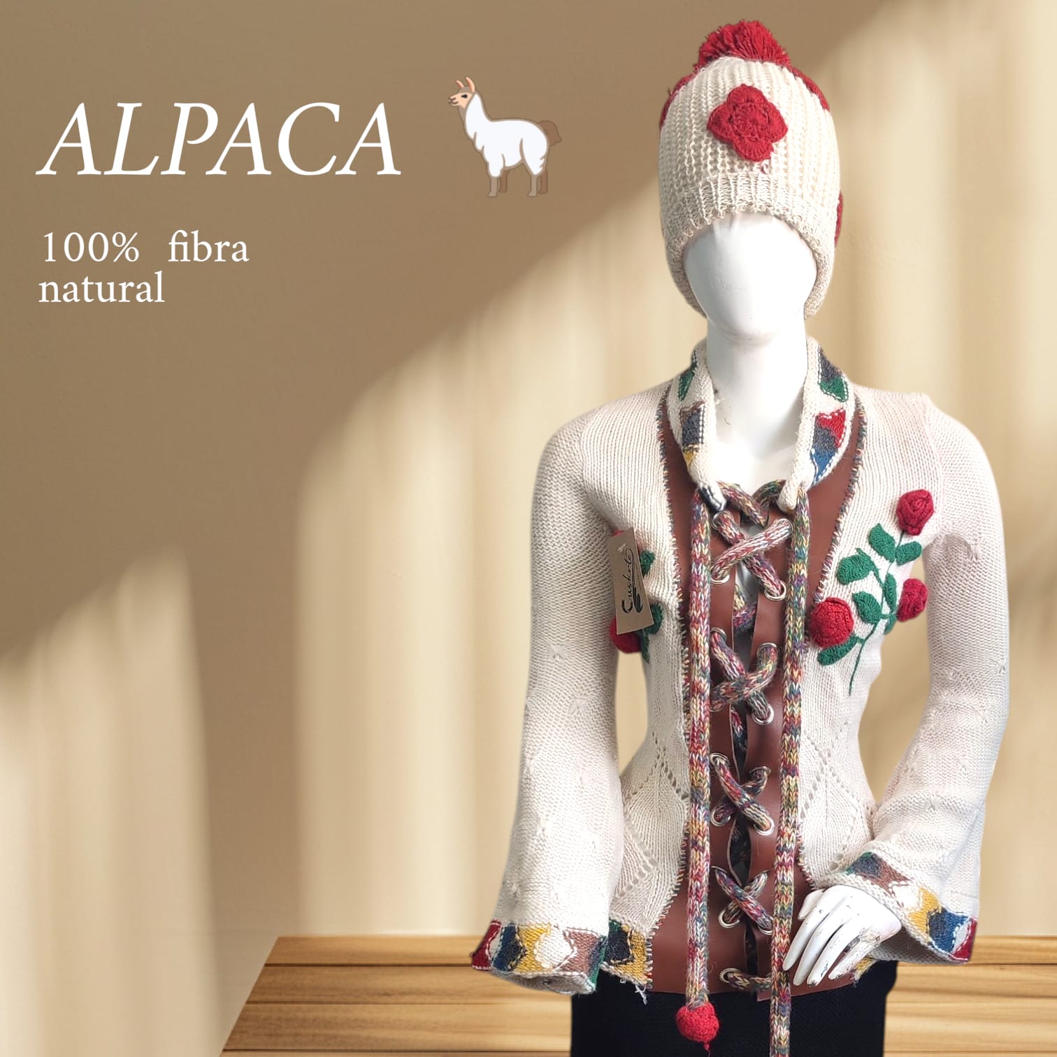 Hecho a base de 50% alpaca con aplicaciones de cuero y pasadores