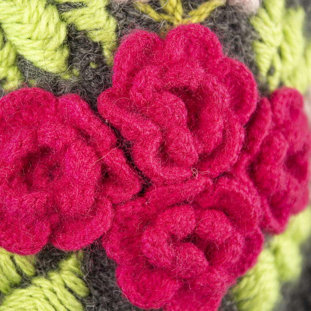 Producto para dama, con bordado a mano y diseños de flores, a base de 100% alpaca buclé.