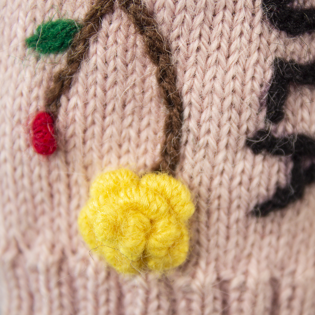 Producto bordado a mano, a base de hilo alpaca al 50% (Bordado primaveral huancavelicano).